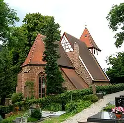 Bei der Kirche handelt es sich um einen Saalbau. Sie umfasst einen spätgotischen Chor, ein Langhaus und einen Turm, die jeweils aus dem 13. Jahrhundert stammen. Die Sonnenuhr ist mit der Jahreszahl 1596 bezeichnet. Die Kirchhofpforte und die Treppenanlage stammen aus dem 18. Jahrhundert.