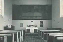 Das Kirchengebäude sah für 156 Maudacher Protestanten etwa 200 Sitzplätzen vor, war also auf Zuwachs gebaut. Auf einem Podest vor der Ostwand stand ein einfacher Altar, über dem an der Wand die Kanzel mit einem Deckel angebracht war. Neben der Kanzel standen zwei Sprüche: