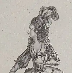 - die Lady Lardoon in der Farce The Maid of the Oaks, welche auch das Menuett von Williamson und Barresford beinhaltete
