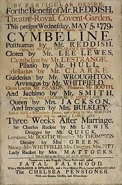 - ↑ Shrewsbury Chronicle, Samstag, 7. September 1776, S. 5 Spalte 4: For the benefit of Mr Dodd and Mrs Bulkley