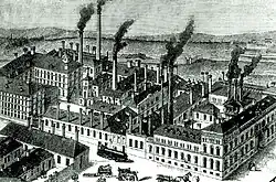 Die 1834 gegründete Firma Fletcher & Punshon in der Rossau 137 (im Gebäude der k.k. Porzellanfabrik) war die erste Maschinenfabrik und gleichzeitig erster Erzeuger von Dampfmaschinen in Österreich-Ungarn.[1][2][3] Diese wurden vorher von englischen Firmen wie Boulton & Watt zugekauft, Fletcher & Punshon spielten daher eine wichtige Rolle bei der von der Regierung Metternich nach einigem Zögern schließlich forcierten Industrialisierung des Landes. Anfangs wurden lediglich Maschinenbestandteile hergestellt, doch bereits kurze Zeit später stieg man in den Bau von Kondensations-Dampfmaschinen ein. Die günstige Lage innerhalb des Linienwalls kam dabei bei Personal- und Materialbeschaffung zugute.[2] Aufgrund des einsetzenden Erfolges wurde bereits einige Zeit nach der Gründung ein Zweigwerk am Michelbauerngrund (im Bereich der heutigen Michelbeuerngasse[2]) errichtet, in welchem die Kesselschmiede untergebracht wurde.[4] Die beiden Gründer Matthew Fletcher und John Punshon stammten aus England und waren vermutlich als Maschinisten über die Donau-Dampfschiffahrts-Gesellschaft ins Kaisertum Österreich gekommen.[5][2]