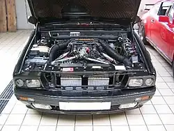 Nachdem der argentinische Geschäftsmann Alejandro De Tomaso den zu dieser Zeit zahlungsunfähigen Sportwagenhersteller Maserati im Sommer 1975 von Citroën übernommen hatte, richtete er das Unternehmen neu aus. Anstelle exklusiver, hochpreisiger Sportwagen, die nur in begrenzter Stückzahl verkauft werden konnten, sollte Maserati zu einem Großserienhersteller werden. Damit verbunden war die Entwicklung eines kleineren, preiswert herzustellenden Modells. Daraus entstand der Maserati Biturbo, ein kompaktes Stufenheckcoupé, das ab 1981 angeboten wurde und ähnliche Dimensionen hatte wie der BMW E30. Die standardisierte Karosserie hatte Pierangelo Andreani entworfen. Sie folgte strukturell Giorgetto Giugiaros Konzeptfahrzeug Maserati Medici und zeigte deshalb Ähnlichkeiten zu Maseratis Oberklassenlimousine Quattroporte. Angetrieben wurde der Biturbo von einem Sechszylindermotor, dessen Hubraum im Hinblick auf die italienische Steuergesetzgebung weniger als 2,0 Liter betrug. Er basierte auf dem gleich großen Saugmotor des Mittelmotorsportwagens Merak,[2] war aber stark überarbeitet worden und hier mit zwei Turboladern ausgerüstet. Der Biturbo ersetzte ab 1982 mit Ausnahme des Quattroporte alle bisherigen Sportwagen Maseratis. Er war zunächst sehr erfolgreich; 1983 hatte sich Maseratis Absatz im Vergleich zu 1981 verzehnfacht. Allerdings zeigten sich bald technische Probleme im Motorumfeld,[3] durch die der Absatz Mitte der 1980er-Jahre ständig zurückging, zuletzt auf 2000 bis 3000 Exemplare im Jahr.