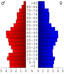 Auf das gesamte County bezogen setzte sich die Bevölkerung zusammen aus 24,1 Prozent Einwohnern unter 18 Jahren, 8,0 Prozent zwischen 18 und 24 Jahren, 28,5 Prozent zwischen 25 und 44 Jahren, 23,9 Prozent zwischen 45 und 64 Jahren und 15,5 Prozent waren 65 Jahre alt oder darüber. Das Durchschnittsalter betrug 38 Jahre. Auf 100 weibliche Personen kamen 93,7 männliche Personen. Auf 100 Frauen im Alter von 18 Jahren alt oder darüber kamen statistisch 89,5 Männer.