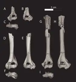 Es sind lediglich drei Fragmente des unteren Oberarmknochens bekannt. Das längste Stück ist 63 mm lang und besitzt noch substantielle Teile der Diaphyse. Der Schaft war rundlich im Querschnitt und wies eine markante Knochenleiste als Ansatzpunkt des Musculus supinator auf. Die Leiste verschmälerte sich zum unteren Gelenkende (Ellenbogengelenk) hin und lief dann auf der Außenseite auf dem äußeren Vorsprung (Epicondyle) der Gelenkrolle aus. Der innere Vorsprung der Gelenkrolle war vergrößert. Die Fossa olecrani bildete oberhalb der Gelenkrolle eine massive Öffnung im Knochen.[1]