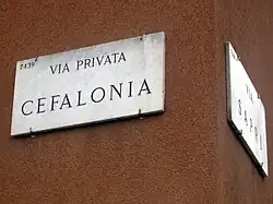 Zahlreiche Straßen in Italien tragen die Namen: Via Divisione Acqui, Via Martiri di Cefalonia, Viale degli Eroi di Cefalonia, Viale Eroi di Cefalonia, Via Caduti di Cefalonia oder mit allgemeinen Bezug auf die Insel: Corso Cefalonia, Via Cefalonia, Via Privata Cefalonia.