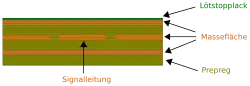 Bei Leiterplatten mit mehreren Lagen kann eine Lage als Masselage reserviert werden, auf der sich eine Massefläche befindet. Alle Bauteile der Leiterplatte können somit auf eine massive und niederohmige Masseverbindung zurückgreifen. Potenzialdifferenzen zwischen den Massepunkten können somit deutlich reduziert werden.