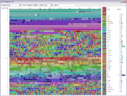 Farbliche Darstellung der Aktivität eines Wikipedia-Bots über einen längeren Zeitraum: typisches Beispiel der Veranschaulichung von Big Data mit einer Visualisierung