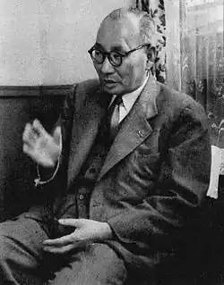 - ↑ Vordere Reihe von links: Hiranuma Ryōzō, Futaki Kenzō, Ōtani Takejirō, hintere Reihe von links: Masumoto, Maeda Seison und Watsuji Tetsurō.