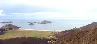 ![]() Panorama der Matauri Bay. In Bildmitte die südlichsten Inseln der Cavalli Islands. | ||