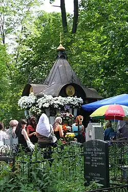 Hunderte von Menschen besuchen das Pokrow-Nonnenkloster, um bei den heiligen Reliquien und der Hauptikone von Matrona zu beten.[1]
