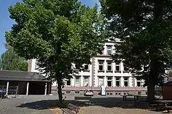 Beim Schulgebäude handelt es sich um einen stattlichen dreigeschossigen Putzbau im Stil der Neorenaissance.