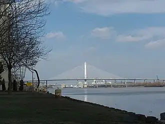 ![]() Veterans' Glass City Skyway in Toledo am Maumee River | ||