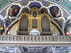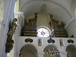 II/P | 25 | Von Matthäus Mauracher I. 1907 und 1964 wurde die Orgel umgebaut.[22] 2012 wurde sie durch ein neues Werk von Orgelbau Vleugels im restaurierten Gehäuse ersetzt.[23] |