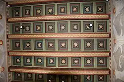 An der West- und Ostwand in der Cella befinden sich unterhalb der Kassettendecke jeweils ein Fries mit Engeln. Die Kassettendecke ist mit hellen Sternen in Grün gefasst.