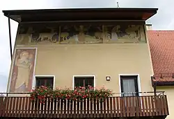 Während das Bauwerk selbst ausschließlich auf Desiderius Lenz zurückgeht[4], ist an den Bildern er und der Maler Gabriel (Jakob) Wüger (1829–1892) maßgeblich beteiligt, als sie beide die Fresken in den Jahren von 1869 bis 1870 ausführten.