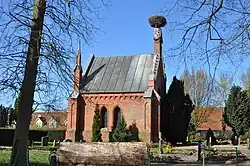 Das als Erbbegräbnis errichtete Gebäude, westlich der nahegelegenen Schlosskapelle, wurde im neogotischen Stil erbaut. Es umfasst eine Größe von sechs mal sieben Meter. Die Mauern wurden aus roten Ziegeln im Blockverband errichtet. In die Seitenwände sind jeweils zwei spitzbogige Bleiglasfenster eingelassen, unter der Traufe sind die Wände mit einem Konsolfries geschmückt. Die spitzgieblige Vorderfront zeigt nach Osten, das spitzbogige Portal ist durch die Holztür und ein Tympanon mit Christusrelief gegliedert. Die Westfront ist schmucklos und nur im Giebelbereich durch ein spitzbogiges Fenster unterbrochen. An allen vier Seiten befinden sich je zwei Strebepfeiler, die rechtwinklig zueinander stehen. Das Gebäude wird durch ein Satteldach abgeschlossen, das mit Kupfer gedeckt ist. Die Decke im Innenraum ist als Stichkappengewölbe ausgeführt, das in der Mitte zu einem Okulus zusammenläuft. Sie ist wie die Seitenwände weiß getüncht. Historisches Inventar ist nicht mehr vorhanden.