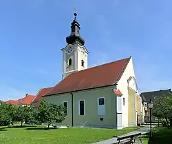 Pfarrkirche Hl. Stephan; sie wurde in der zweiten Hälfte des 14. Jahrhunderts errichtet, wobei die nördliche Chorseitenkapelle (Totenkapelle) älteren Bestandes ist (Ende 14. Jahrhundert). In den Jahren 1695/96 baute Carlo Antonio Carlone das Langhaus innen um und barockisierte es. Der mächtige, dreigeschoßige Kirchturm im südlichen Chorwinkel wurde über einen mittelalterlichen Kern von 1774 bis 1777 von dem Baumeister Karl Ehmann errichtet.