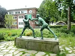 1913, bereits vor der Anlegung des Parks, wurde an der Stelle der heutigen Anlage die Skulptur Faustkämpfer von Eberhard Encke aufgestellt.[1] Am 1. September 2011 wurde die Grünfläche, die die Skulptur umgibt, nach Max Schmeling benannt.[2][3][4]