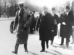 - ↑ Lothar Machtan: Der Endzeitkanzler. Prinz Max von Baden und der Untergang des Kaiserreichs. Konrad Theiss Verlag, Stuttgart 2018, ISBN 978-3-8062-3660-6, S. 440–444; Rainer F. Schmidt: Kaiserdämmerung. Berlin, London, Paris, St. Petersburg und der Weg in den Untergang. Klett-Cotta, Stuttgart 2021, ISBN 3-608-98318-X, S. 765.