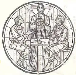 - 1989 Konstanz, St. Gebhard, Rundfenster mit dem Besuch der drei himmlischen Boten (Dreifaltigkeitsgleichnis) bei Abraham