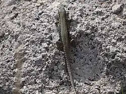 Zwischen den Felsenbrocken, auf den Trockenrasenflächen, in den feuchten Höhlen und im Bereich der Wasserlöcher der verwilderten Steinbrüche leben zahlreiche Reptilien (Smaragd-, Mauer- und Zauneidechsen, Blindschleichen, Ringel- und Schlingnattern) und Amphibien (Erd-, Kreuz- und Geburtshelferkröte, …).[34]