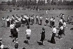 Volkstanzgruppe im Kibbutz Dalia, historische Fotos von Zoltan Kluger, 1. Mai 1945