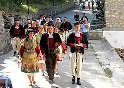 Mazedonier in traditioneller Mijaken-Tracht beim Galičnik-Hochzeitsfest[1]