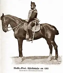 - ↑ a b c Erna Keubke: Die Pracht der Strelitzer (District-)Husaren. In: Mecklenburg-Magazin. Nr. 2 (1997). Landesverlags- und Druckgesellschaft, Schwerin, S. 4.