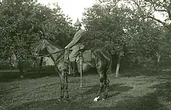 Der Erste Weltkrieg hielt dann neue Herausforderungen bereit. Ein Teil der berittenen Gendarmen wurden im August 1914 zum Kriegseinsatz herangezogen. In der Mobilmachungsplanung von 1914 waren zwei Gendarmerie-Wachtmeister, zwei berittene Gendarmen und zwei Fußgendarmen verzeichnet. Sie kamen in den Formationen der Feldgendarmerie zum Einsatz.[33] Es folgte der Einsatz in den mecklenburgischen Regiments-Verbänden. Dort dienten die Strelitzer Gendarmen zusammen mit 20 berittenen Gendarmen aus Schwerin.