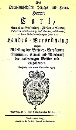 - ↑ Großherzoglich Mecklenburg-Strelitzischer officieller Anzeiger für Gesetzgebung und Staatsverwaltung. Nr. 9 (1842). S. 44 f.