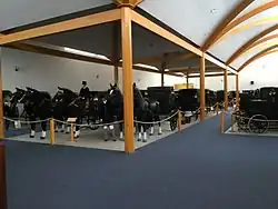 In fünf Hallen mit einer Ausstellungsfläche von 3240 m² werden 191 von 216 Fahrzeugen und Kutschen mit Zubehör präsentiert.[6] Darunter befinden sich Reise- und Ausfahrwagen, Kutschen, wirtschaftlich genutzte Wagen, Postkutschen, Milchwagen und Flaschenbierwagen, Beerdigungswagen, Kinderfahrzeuge und Pferdeschlitten, pferdegezogene Militärwagen, Feldküchen, Jagdwagen, Pferdegeschirr und Reisezubehör. Die Exponate stammen aus der Zeit zwischen 1800 und 1950 und zeigen die große Vielfalt an Bauarten von Fahrzeugen.[7]