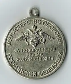 - ↑ Russisches Verteidigungsministerium hat Medaille "Für die Rückholung der Krim" gegründet. Gazeta.ru, 25. März 2014, abgerufen am 23. September 2015 (russisch).