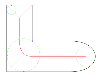 Weist der Rand des Gebiets Ecken auf, berührt die mediale Achse an diesen Stellen den Rand. An allen anderen Stellen ist dies nicht der Fall.