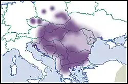 Das Verbreitungsgebiet erstreckt sich von Nordgriechenland über fast den gesamten Balkan bis nach Ungarn, Rumänien, ins östliche Österreich, Tschechien, Slowakei, Südpolen, die Westukraine und Moldawien. Einige isolierte Vorkommen gibt es auch in Zentralpolen. Ein Vorkommen in Sachsen konnte bisher nicht anatomisch bestätigt werden. Möglicherweise liegt auch eine Fehlbestimmung vor.[4] In Südbulgarien kommt die Art meist zwischen 100 und 400 m über Meereshöhe vor, sie steigt aber vereinzelt bis auf 2000 m an.[3]