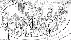 Sicher ist jedoch, dass bereits in der Antike mehrere Epen über mythologische Seefahrergestalten entstanden, meist aus dem Umfeld des Trojanischen Krieges oder der Argonautensage. Bekannte Beispiele sind Homers Odyssee, Vergils Aeneis und die Argonautika des Apollonios von Rhodos, doch auch weniger einflussreiche Vertreter wie die Argonautica des Gaius Valerius Flaccus können als nautisches Epos gelten.[3] Von den erhaltenen antiken Dramentexten wird die See(-fahrt) nur in AischylosDie Perser thematisiert, wo der Bau einer Brücke über den Hellespont mit einer Hybris gleichgesetzt wird.[17] Es ist jedoch nicht auszuschließen, dass bereits in der Antike nautische Dramen existiert haben, die mittlerweile nicht mehr erhalten sind.