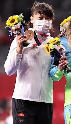 ![]() Dschumanasarowa bei der Siegerehrung bei den Olympischen Sommerspielen 2020 | ||||||||||||||||||||||||||||||||||||||||||||||||||||||||