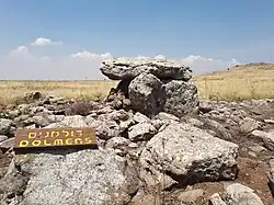 Die Megalithanlagen auf dem Golan umfassen mehr als dreißig Dolmenkonzentrationen. Die frühesten Funde stammen aus der frühen Mittelbronzezeit (EBA IV B-C nach Albright), ca. 2250–1950 v. Chr. Dies schließt nicht aus, dass die Dolmen früher erbaut wurden.[1]
