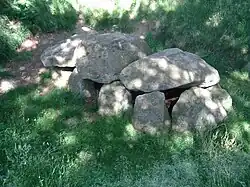 • Anlage III mit der Sprockhoff-Nr. 633 Von den vier Decksteinen der Kammer liegt nur noch der westliche auf. Zwei weitere Decksteine sind noch vorhanden, ebenso sieben Trag- und ein Endstein.