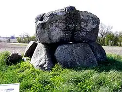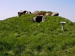 - ↑ (dän. Langdysse) ist die in Dänemark und Schweden gebräuchliche Bezeichnung für Dolmen die in einem rechteckigen oder trapezoiden Hünenbett liegen, im Gegensatz dazu sind Runddolmen jene Dolmen die im Rundhügel liegen