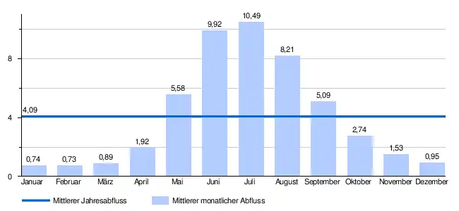 - ↑ Martin Pfaundler, Rolf Weingartner, Robert Diezig: „Versteckt hinter den Mittelwerten“ – die Variabilität des Abflussregimes. In: Hydrologie und Wasserbewirtschaftung (HyWa). Jg. 50, Heft 3, 2006, S. 116–123, hier Tabelle auf S. 119 (Download [PDF; 3,2 MB; abgerufen am 31. August 2020]). Abrufbar unter Gesamtes HyWa Heft 3, 2006..