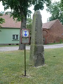 - ↑ So das Schild neben dem Stein: „Preußischer Meilenstein. Errichtet um 1800 von der alten Poststraße Magdeburg-Stendal“.