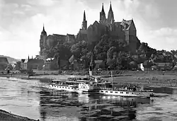 Bereits 1881 war ein Raddampfer Meissen für die Sächsisch Böhmische Dampfschiffahrtsgesellschaft (SBDG) in Dienst gestellt worden. Er fuhr nach seiner Veräußerung 1907 an die Oberweser Dampfschiffahrt als Kronprinz Wilhelm bis 1967 auf der Weser. Sein Mittelstück befindet sich seit 1968 wieder unter dem Namen Meissen im Deutschen Schifffahrtsmuseum in Bremerhaven.