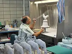 Im Zuge der Neuordnung der Gesellschafterverhältnisse nach der Wende wurde aus dem Volkseigenen Betrieb (VEB) am 26. Juni 1991 die „Staatliche Porzellan-Manufaktur Meissen GmbH“ mit dem Freistaat Sachsen als alleinigem Gesellschafter.[17][18] Während der Geschäftsbetrieb der Manufaktur in dieser Zeit anfänglich ohne weitergehende Einschnitte mit der Belegschaft und dem Management der Vorwendezeit weiterging, sah sich die europäische und deutsche Porzellanindustrie in den Folgejahren stark rückläufigen Tendenzen ausgesetzt. So sank von 1991 bis 2007 die Zahl der deutschlandweiten Angestellten von ca. 27.000 auf ca. 6.000.[9] Ursachen waren eine voranschreitende Marktsättigung, der chinesische Export preisgünstigerer Erzeugnisse sowie der gesellschaftliche Wandel, durch den der „gedeckte Tisch“ an Bedeutung verlor.[19][9]