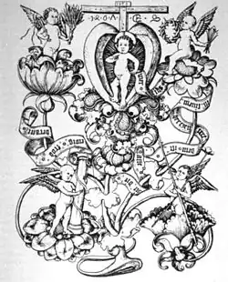Im Spätmittelalter gab es den Brauch, sich zum Jahresbeginn ein gemaltes, gedrucktes oder als kleine Figur gearbeitetes Christkind zu schenken, oft mit erbaulichen Texten. Im Kupferstich Christkind im Herzen (L. 51, rechts) ist auf dem Spruchband der Glückwunsch zu lesen „wer ihs (Jesus) in sinem herzen tre(g)t dem ist alle zit die ewige froed beraeit“. Um das Christkind herum tragen kleine Engel die Leidenswerkzeuge und verweisen auf die Passion Christi. Das ähnliche Blatt Christus mit Neujahrwunsch (L. 50, „Ein guot selig ior“) wird als eine der ersten Weihnachtskarten überhaupt angesehen.