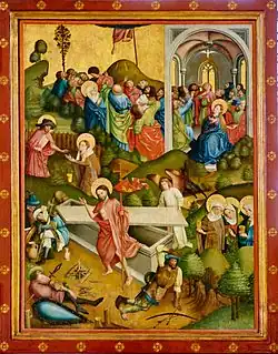 - ↑ Henry Thode, Hugo von Tschudi (Hrsg.): Repertorium für Kunstwissenschaft. Band 29. Georg Reimer, Berlin 1906, S. 584, unterer Abschnitt (Textarchiv – Internet Archive): „eine Kreuztragung Christi […], die, wie ich glaube, vom Meister des Schöppinger Altars herrührt …“