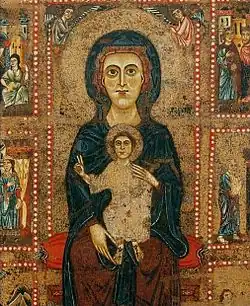- Madonna dagli occhi grossi (auch Madonna con Bambino in trono e angeli oder Madonna degli Occhi Grossi), Museo dell’opera del Duomo, Siena. Holzgemälde, 97 × 67, entstand zwischen 1225 und 1250.[4]