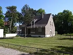 Durch die Eingeschossigkeit etwa des östlichen Viertels des Gebäudes, dem Rücksprung dieses Gebäudeteiles im Norden und dessen Fensterlosigkeit nach Norden, sowie eine in diesem Bereich orthogonal vom Gebäude abgehende Gartenmauer lassen die Nordfassade als Rechteck erscheinen. Der Haupteingang an der Nordseite befindet sich direkt links von der Mittelachse. Über ihm befindet sich ein flaches Vordach.