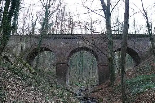 Reste einer Brücke aus Lava-Tuffstein im ehemaligen Troschel-Park zwischen Melbbrücke und Melbbad -