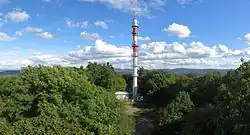 Auf dem Berggipfel steht ein ehemals militärisch genutzter Richtfunkmast und ein Aussichtsturm.