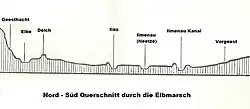 Solange in der Elbmarsch Menschen wohnten, waren sie den Gefahren des Wassers ausgesetzt.[2][3][4] In alten Tagebüchern und Chroniken wird immer wieder von verheerenden Überschwemmungen berichtet. Manchmal kamen die Fluten von allen Seiten. Durch die weit offene Mündung der Ilmenau drangen sie bei Sturmfluten (z. B. Neujahrsflut von 1855) und anderen Hochwasser von der Elbe her in die Binnenmarsch ein. Und lagen die Elbdörfer durch den Achterdeich noch einigermaßen geschützt, so waren die Überschwemmungen umso schlimmer, wenn der Elbdeich an einer schwachen Stelle brach. Die Bewohner der Winsener Marsch waren auch bei Deichbrüchen, die sich auf der Strecke bis hinauf nach Bleckede ereigneten, immer die Hauptleidtragenden. Überdies entstand in dem Gebiet stets Hochwasser, wenn die Schneeschmelze begann oder starke Regengüsse niedergegangen waren. Die aus der Geest kommenden Flüsse Neetze, Ilmenau, Roddau und Luhe brachten dann gewaltige Wassermassen, die in der ebenen Marsch bei nur wenig Gefälle sehr bald über die Ufer traten. Durch Übersandung als Folge von Elbdeichbrüchen wurden die südlichen Uferränder mehr und mehr erhöht (in der Avendorfer Feldmark bis zu 2 Meter). Die Überschwemmungen ergossen sich also in die tiefer liegende Binnenmarsch. Die Ilau, Neetze und Ilmenau führten die Wassermassen in die Elbe zurück.